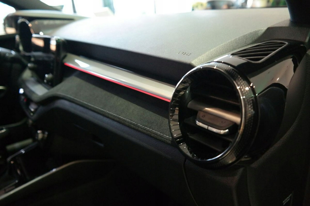 - Спортивні елементи інтер'єру: сидіння з інтегрованими підголівниками, чорна обшивка стелі, декор у стилі карбон, декоративна планка на панелі приладів, оздоблення центральної консолі, ручки передніх дверей червоного кольору