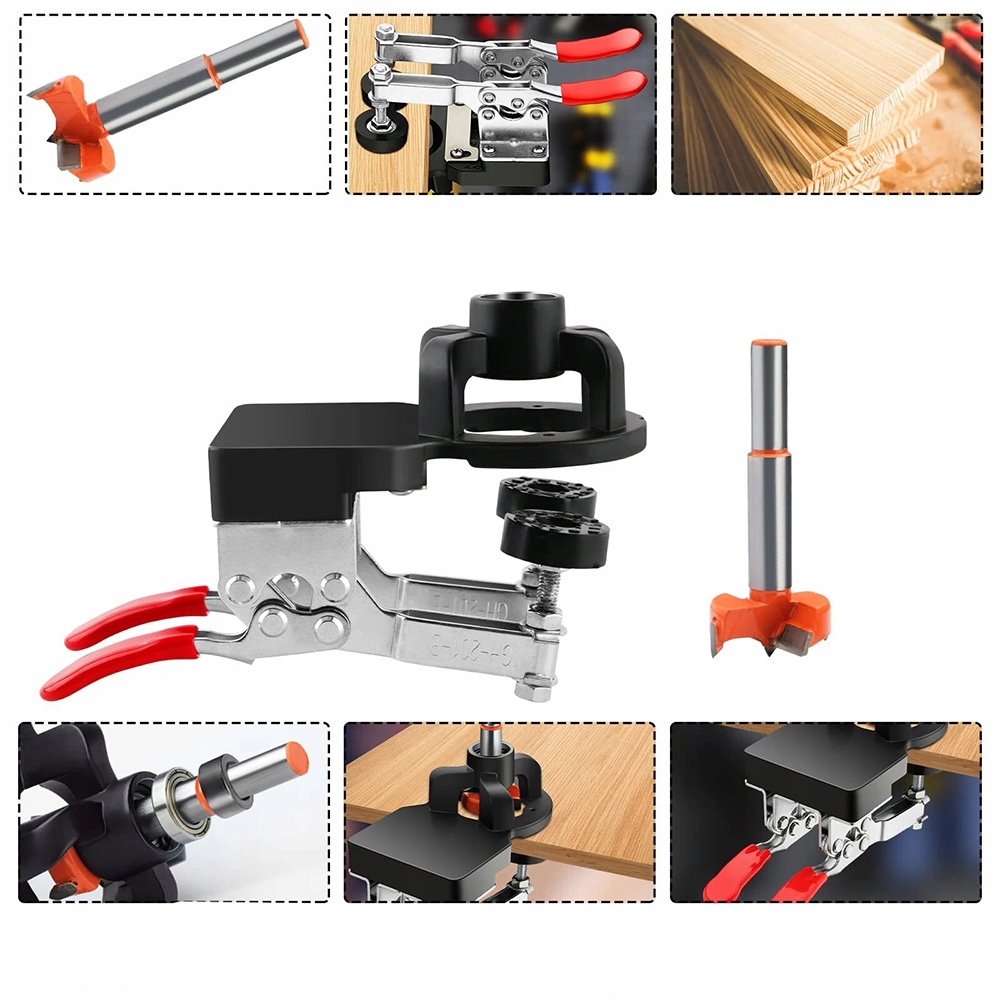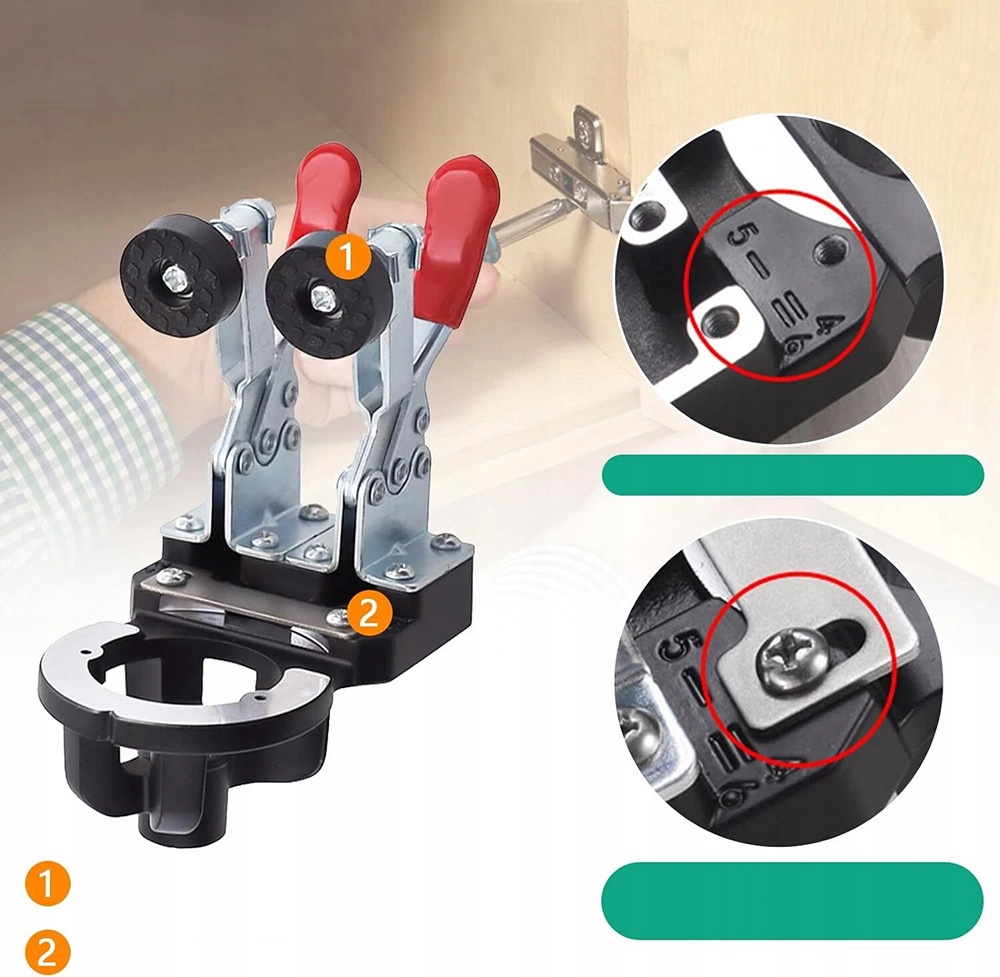 - Основа виготовлена з алюмінієвого сплаву. - З бічними отворами для свердління ви можете використовувати цей інструмент для позиціонування та свердління отворів (фіксована відстань між отворами становить 48 мм, спершу потрібно вийняти свердло), або ви можете використовувати для позиціонування безпосередньо бічні отвори в петлі.