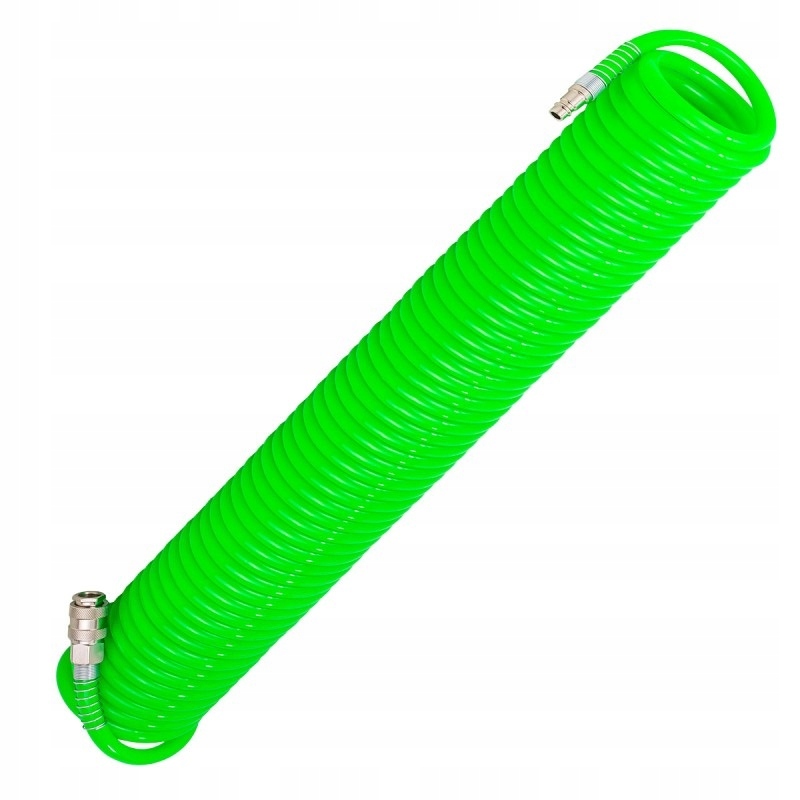 Поліуретановий спіральний шланг використовується для передачі повітря в стандартних пневматичних системах до компресора з роз'ємами 8 мм х 12 мм - 15м марки ROCKFORCE, використовується для підключення пневматичного інструменту до компресора при роботі зі стисненим повітрям.