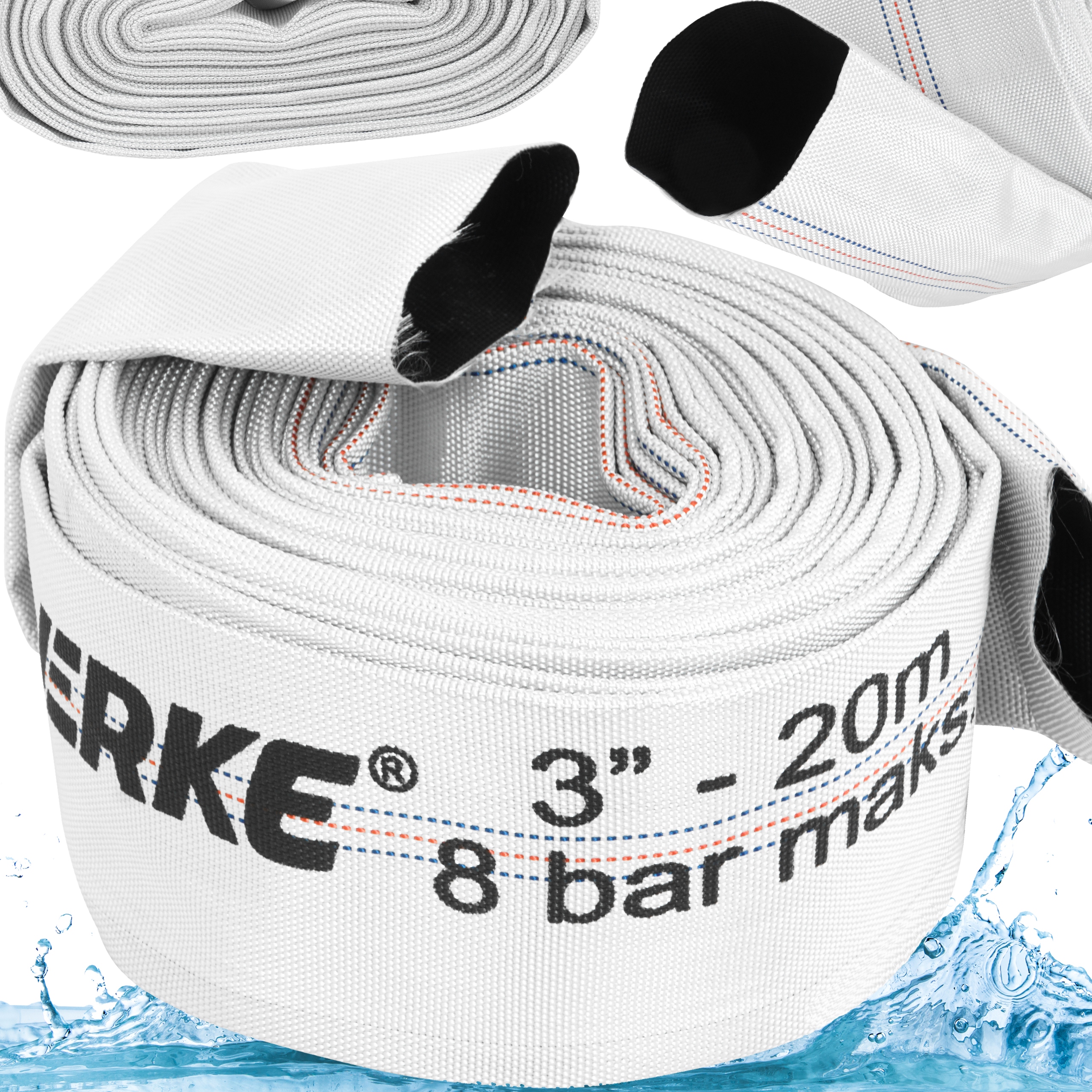 ПОЖЕЖНИЙ ШЛАНГ, Септик, 3" (75 мм) 20 метрів VERKE для чистої або забрудненої води. Виготовлений з білої поліефірної стрічки в поєднанні з чорною внутрішньою вставкою. Ці шланги характеризуються високою стійкістю до перепадів температур і ідеально підходять для робота над вигинами.
