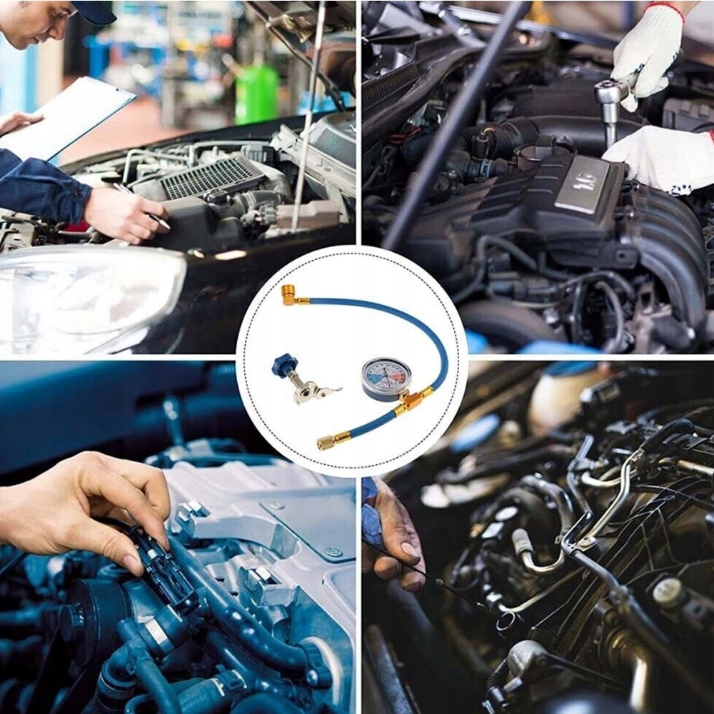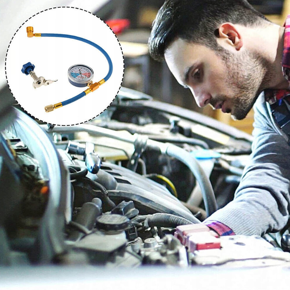 ✅ПРИМІТКА: НЕМАЄ ШВИДКОГО РОЗ’ЄМУ ДЛЯ АВТОМАТИЧНОГО ЗАРЯДЖЕННЯ КОНДИЦІОНЕРУ! Включає: Шланг, манометр, клапан ємності з холодоагентом, з’єднувач шланга