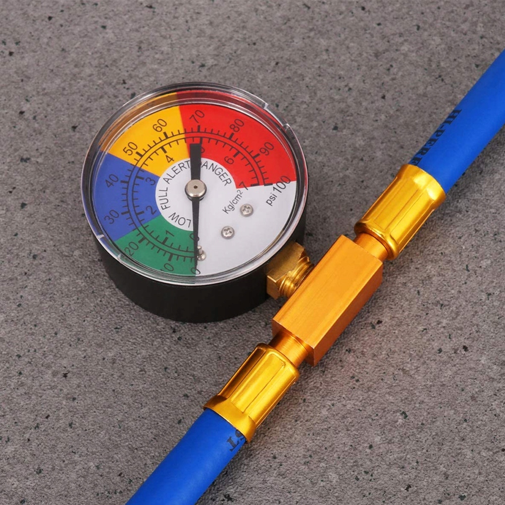 ✅ 【точне вимірювання】 Унікальний індикатор тиску пружини. Перевіряє низький бічний тиск, щоб точно заповнити теплоносій кондиціонування. Клапан для запобігання випадковому виділенню холодоагенту, поліпшення безпеки транспортних засобів та супутніх транспортних засобів.