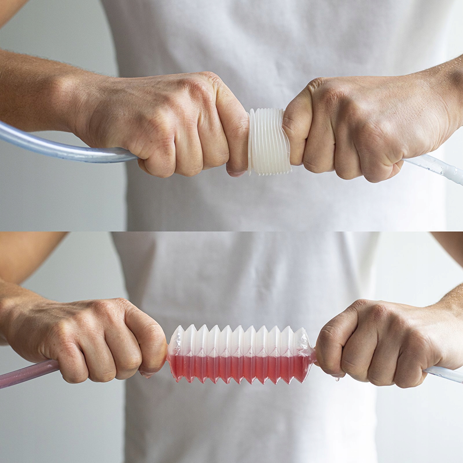 4. Стисніть насос, закрийте хомут, а потім енергійним рухом розгорніть насос (рідина буде засмоктуватися в шланг)