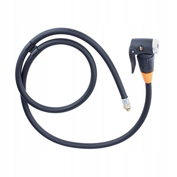 - Шланг для велосипедний насос із головкою, адаптованою до автомобільних клапанів / Schrader (AV), велосипедних клапанів Dunlop (DV) і спортивних клапанів Presta (FV).