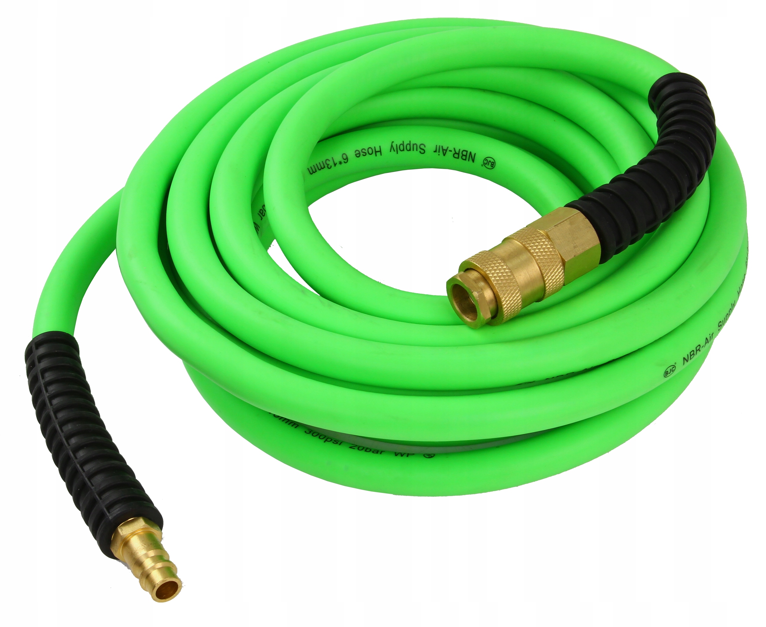Шланг виготовлений з гнучкої гуми. Конструкція шланга посилена текстильною сіткою. Запобігає скручуванням і перегинам. Зовнішній шар шланга стійкий до масляного та ультрафіолетового випромінювання, дощу, морозу тощо. Використовується для передачі стисненого повітря для живлення різних типів пневматичних інструментів. Він характеризується дуже високою гнучкістю і високою пропускною здатністю. . Пропускна здатність залежить від тиску та внутрішнього діаметра шланга, чим більший внутрішній діаметр, тим більша ефективність повітря.