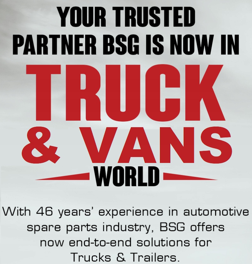 На додаток до своєї провідної позиції в легкових автомобілях і легких вантажівках, BSG поєднала багаторічний досвід і якість у вантажівках і рішеннях щодо постачання запасних частин для марок вантажівок. такі як Man, Mercedes, Daf, Scania, Volvo, Renault, Ford, Iveco, Isuzu та причепи.