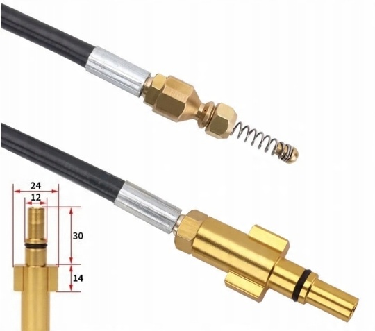 Змійка має 3+1 струменеві форсунки з пружиною, що дозволяє легше та ефективніше чистити, очищати та промивати всі типи труб, установок і кабелі!!