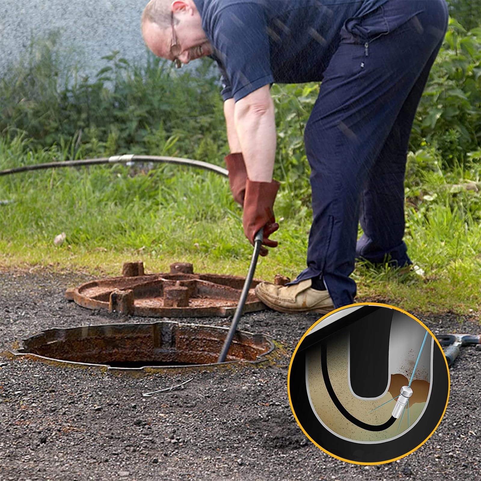 🎉Простий у використанні: гнучкий шланг для очищення труб має практичний захист від згинання. Це запобігає накопиченню води. Шланг надзвичайно гнучкий і надзвичайно маневрений. Додаткове маркувальне кільце вказує на рух в трубі. Очищення надзвичайно екологічно чисте, оскільки воно здійснюється лише водою та без хімікатів.