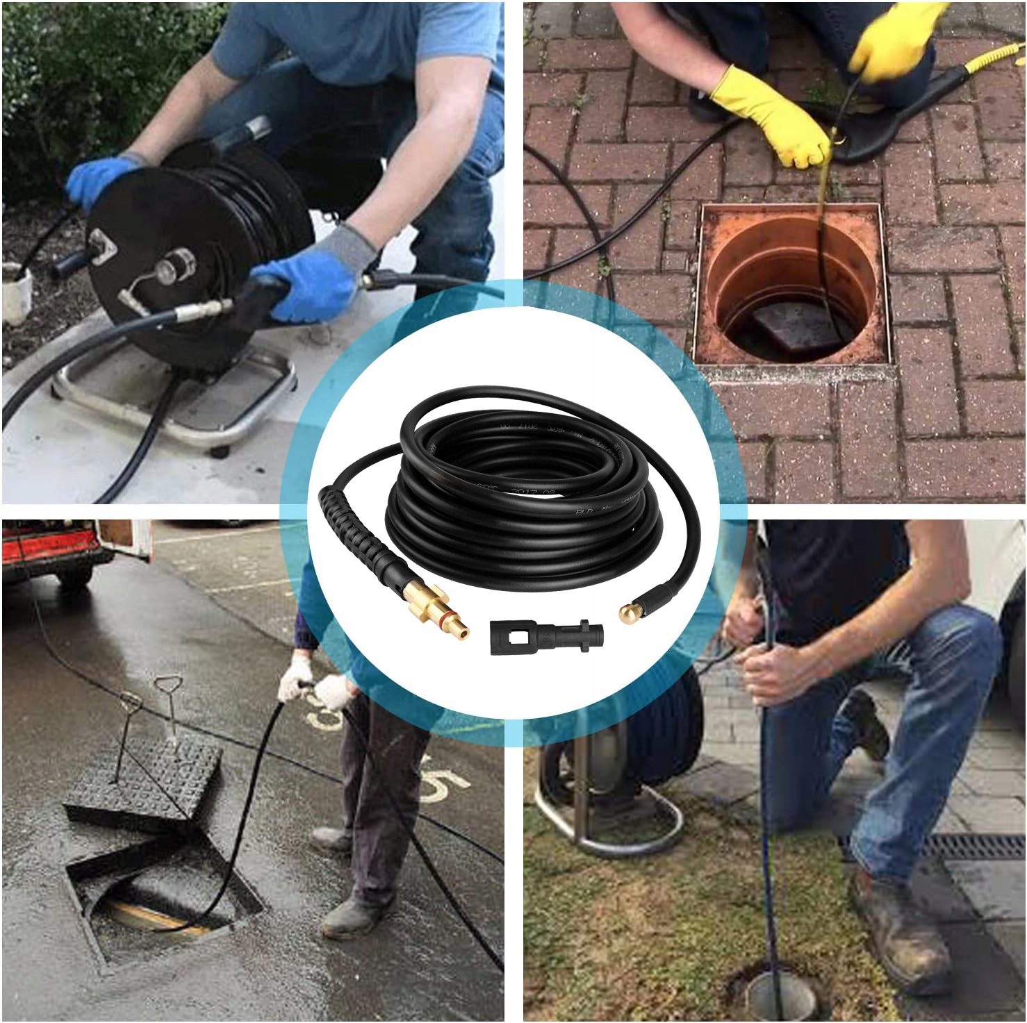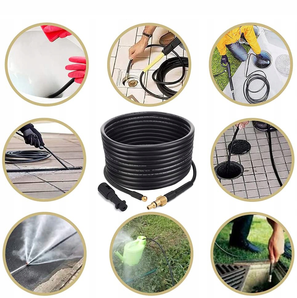 💒 Придатний інструмент для домашнього використання: Наш набір для очищення труб високого тиску підходить для домашніх мийних апаратів високого тиску. Можна використовувати для миття автомобілів, мотоциклів, підлоги, вікон, під’їздів, дахів, стоків, дренажів, ванних кімнат, зовнішніх майданчиків, туалетів, інтер’єрів тощо.