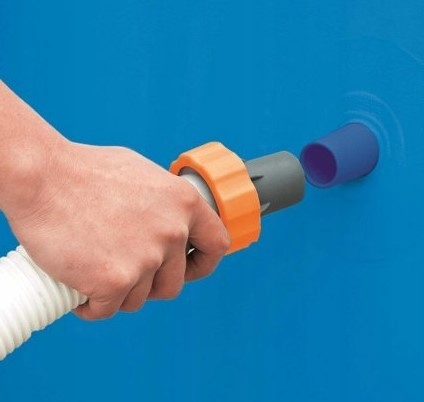 Предметом продажу є перехідник для підключення шлангів в басейн. Вихід з басейну становить приблизно 32 мм, перехідний – приблизно 38 мм і закінчується різьбою, до якої можна закріпити шланг з гайкою.