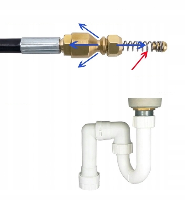 Пружинний наконечник - гнучкий і міцний, полегшує вставлення насадки в труби, також у кутах і важкодоступних місцях.