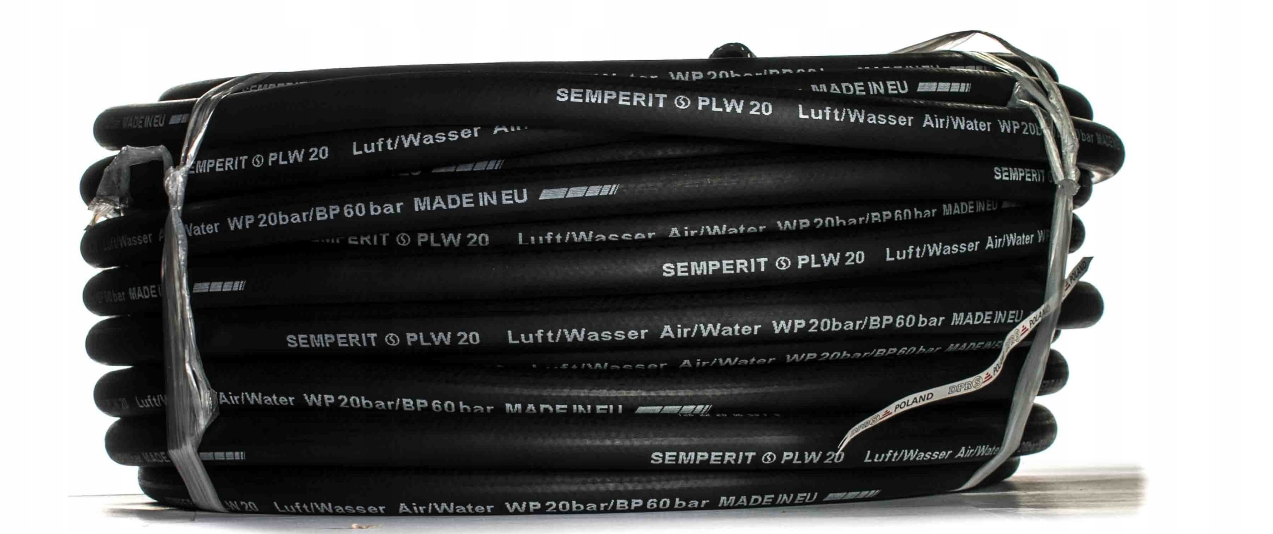 - Шланг PLW 20 від SEMPERIT, призначений, зокрема, для передачі повітря та води. промисловість і будівництво. Його гнучкі властивості особливо підходять для важких будівельних машин, промислових робіт або для живлення пневматичних майстерень, таких як штукатурні агрегати, торкрет-бетонні машини, стаціонарні та мобільні компресори, ударні пістолети або ударні гайковерти. Широка доступність з’єднувачів, стяжок і затискачів у пропозиції дозволяє легко ремонтувати кабель, а також його виготовляти.
