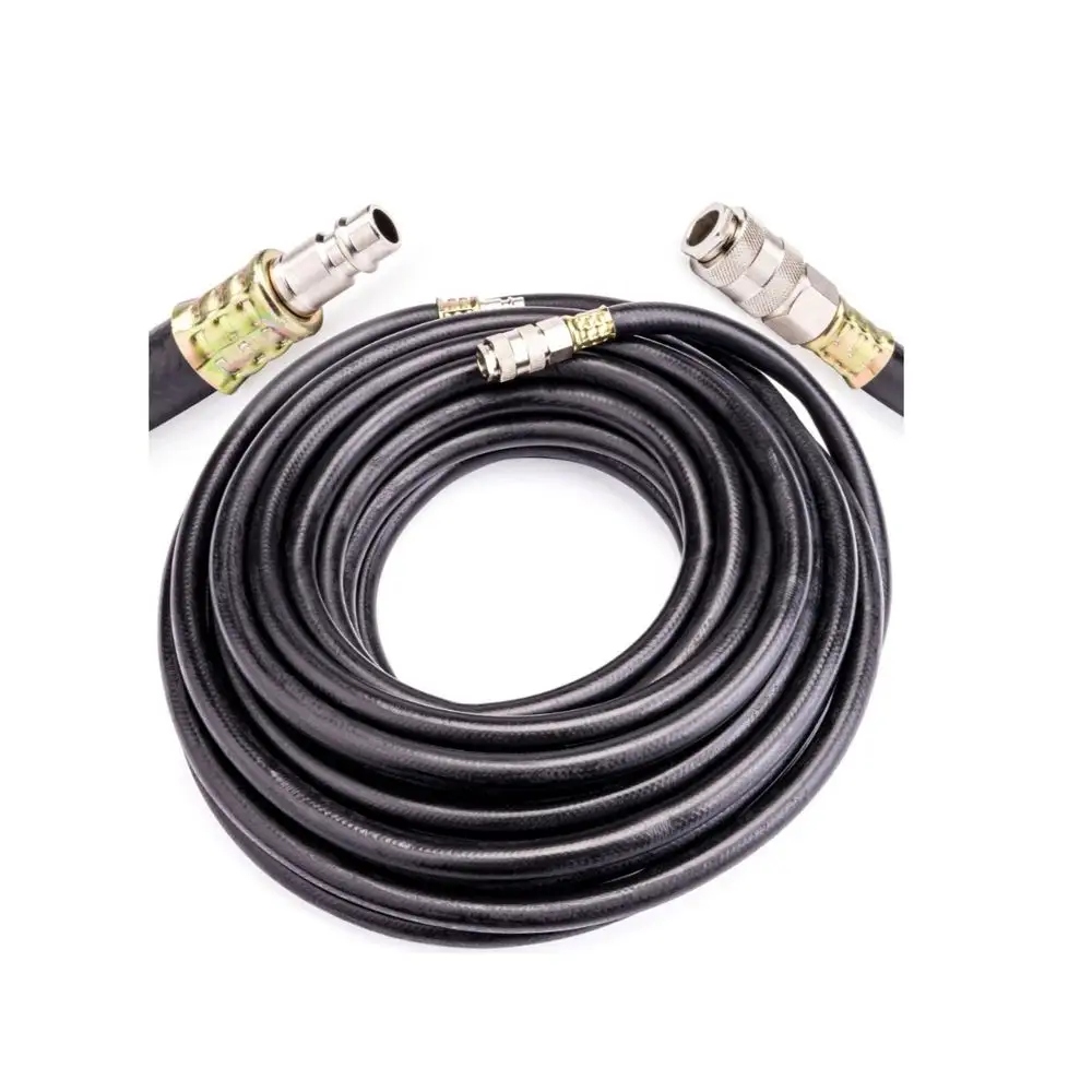 ШВИДКЕ ПІДКЛЮЧЕННЯ ДО ПНЕВМАТИЧНИХ ПРИСТРОЇВ ТИП: Лобзики, компресори, фарбопистолети, пневматичні заклепки, пневматичні гайковерти, дрилі, шліфувальні машини, шліфувальні машини тощо. Завдяки тому, що вона не спіральна, її можна намотувати на барабан. Найбільшою перевагою є те, що він виготовлений із високоякісної гуми, яка є маслостійкою, гнучкою та може витримувати високий тиск.