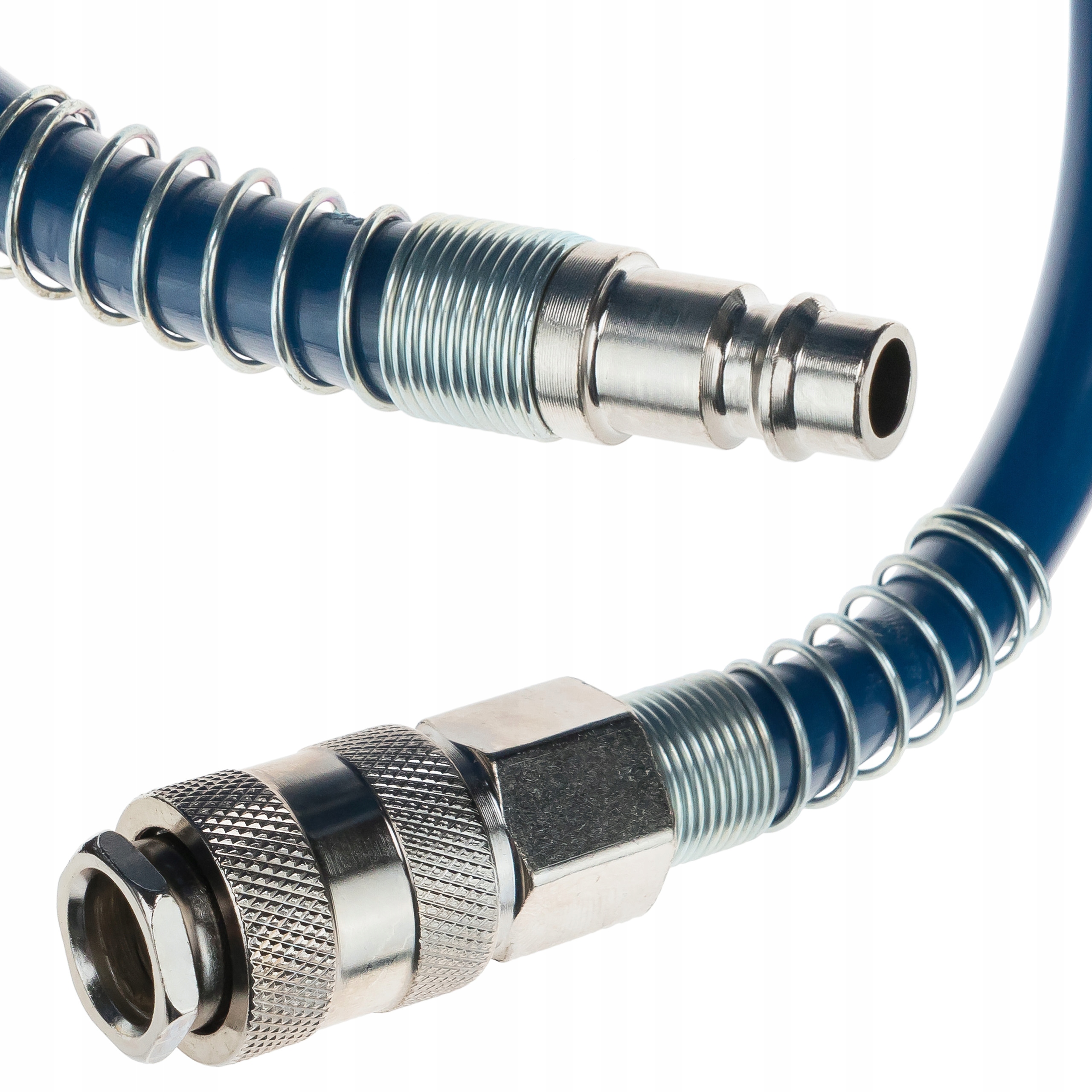 Спіральний поліетиленовий пневматичний шланг, призначений переважно для індивідуальних користувачів. Ідеально підходить для використання в домашньому гаражі, на фермі або для легких робіт в майстерні. Використовується для легкого та зручного підключення ручних інструментів і пневматичних аксесуарів, таких як пістолети для надування повітря, ударні гайковерти, шліфувальні машини або пістолети-розпилювачі. Завдяки максимальному робочому тиску 10 бар, шланг сумісний із більшістю стандартних пневматичних установок.