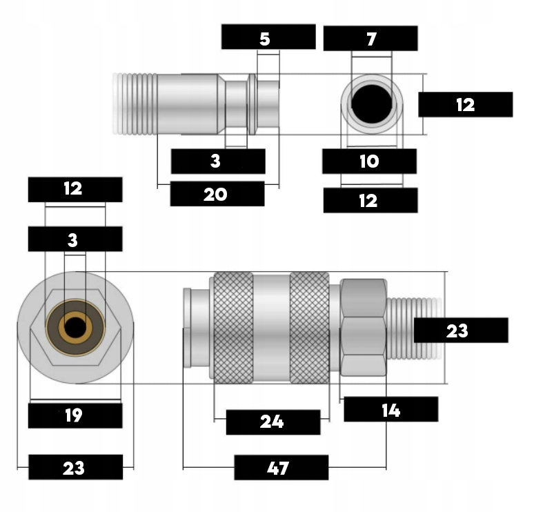- Ідеально підходить для всіх типів пневматичних пристроїв: пістолетів для продування, компресорів, пістолетів для промивання та змащування, пневматичних інструментів