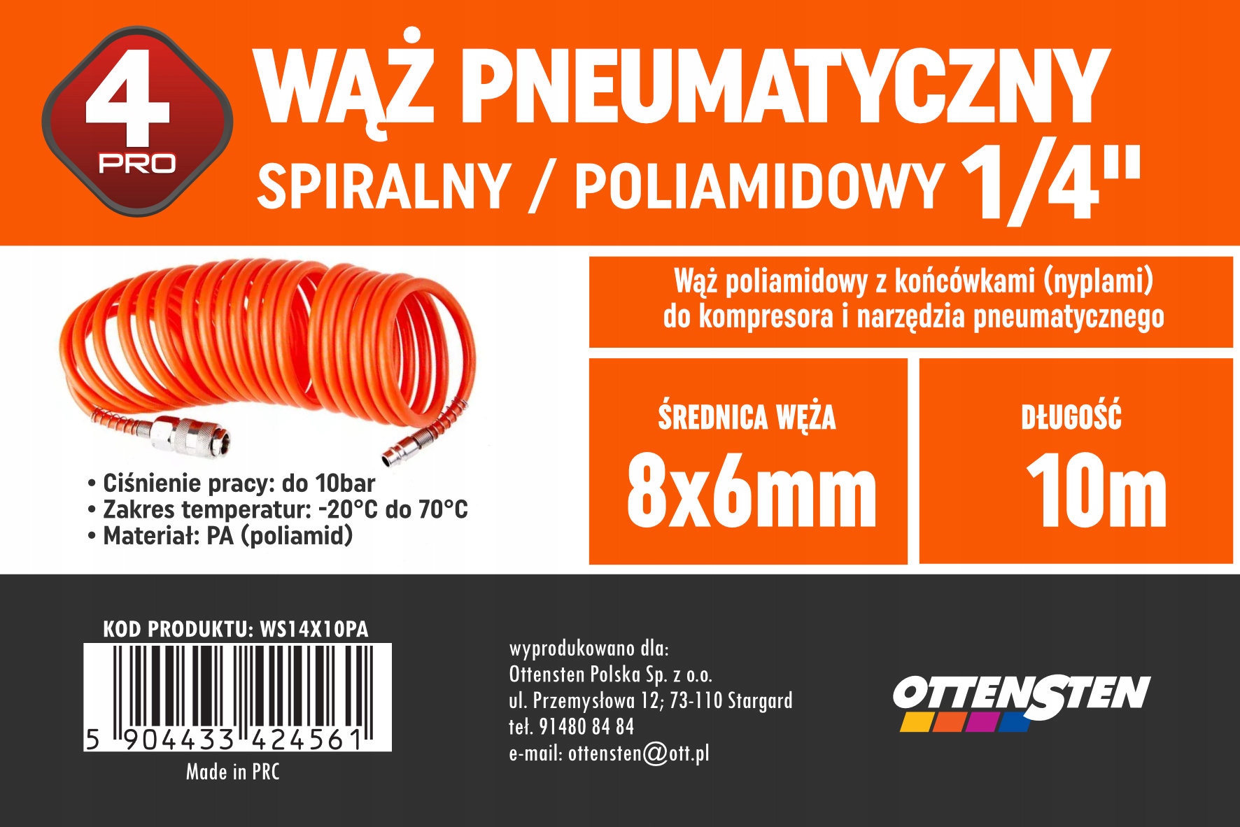 ШЛАНГ пневматичний спіральний шланг ПОЛІАМІД ПА 1/4" 6х8мм компресор 10м