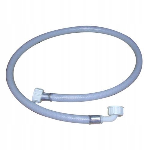 довжина: 1,5 м розміри: внутрішній діаметр: 9,5 мм; зовнішній діаметр: 16,0 мм робоча температура: - до +70 °C кінці: 1x прямий з гайкою 3/4", 1x коліно з гайкою 3/4" матеріал: спеціальна суміш ПВХ, притискна рама PES, пластикові кінці, алюмінієві манжети та гумові ущільнювачі колір: сірий Вхідний шланг пральної машини з коліном довжиною 1,5 м для гнучкого підключення води для пральних машин і посудомийні машини.