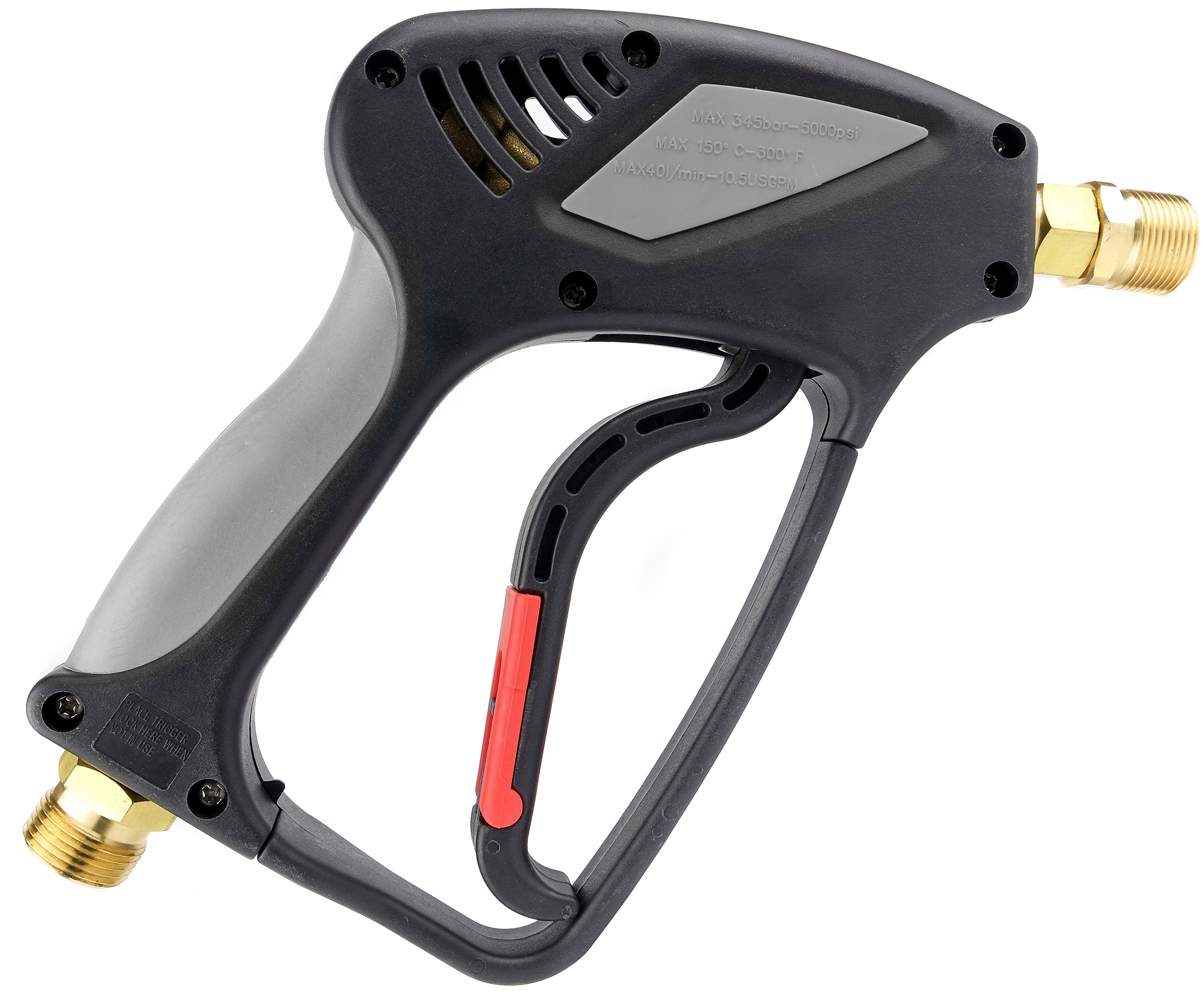 Пістолет зі списком і насадкою з високоякісних матеріалів. Він оснащений замком для запобігання необережного використання. Пістолет витримує дуже високий тиск і температуру. Він сумісний з пральними машинами серій KARCHER HD і HDS