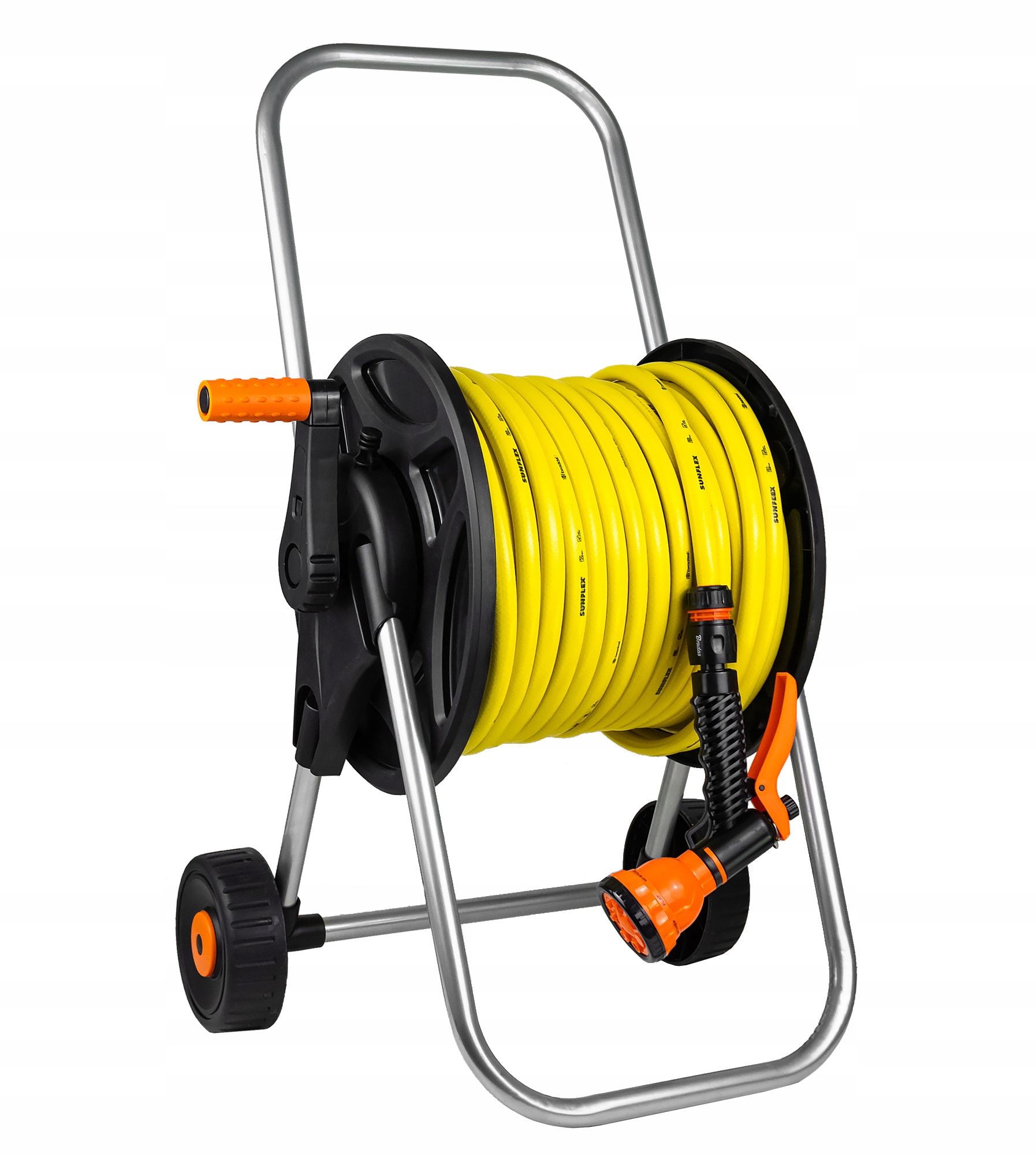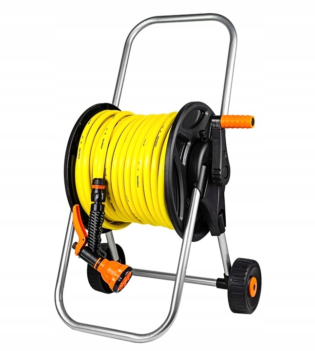 Зручний для зберігання набір, який завжди буде під рукою. Практичний візок для розмотування та змотування садового шланга, незамінний у кожному саду.