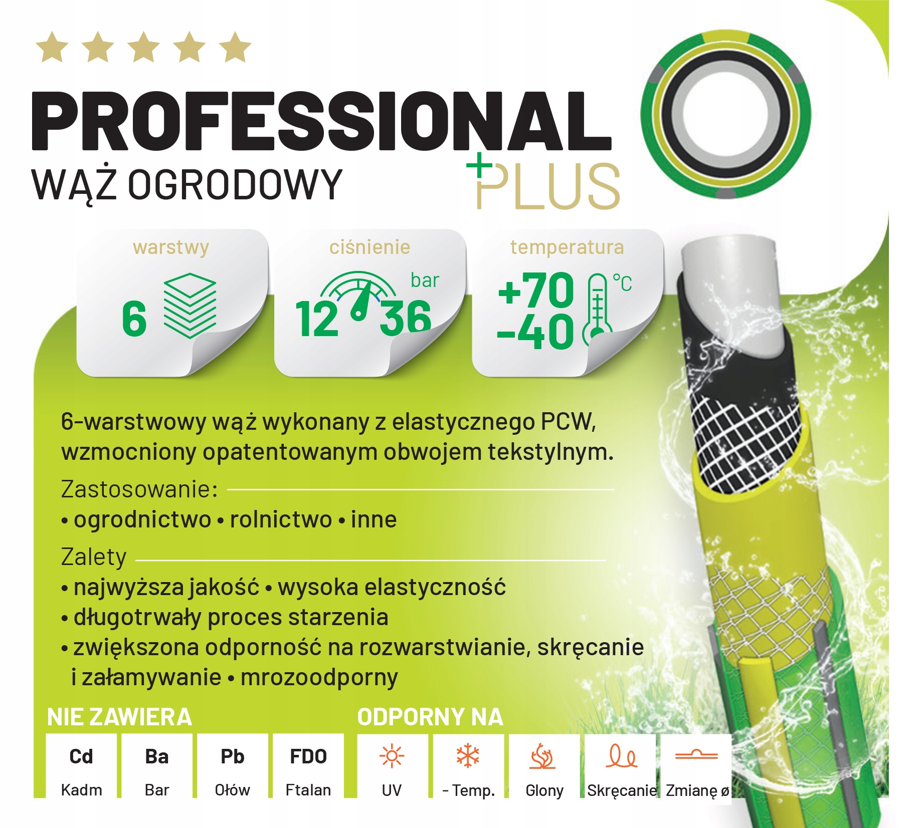 Садовий водяний шланг IMET із серії Professional + – це 6-шаровий шланг із підвищеною герметичністю та стійкістю до розшарування.