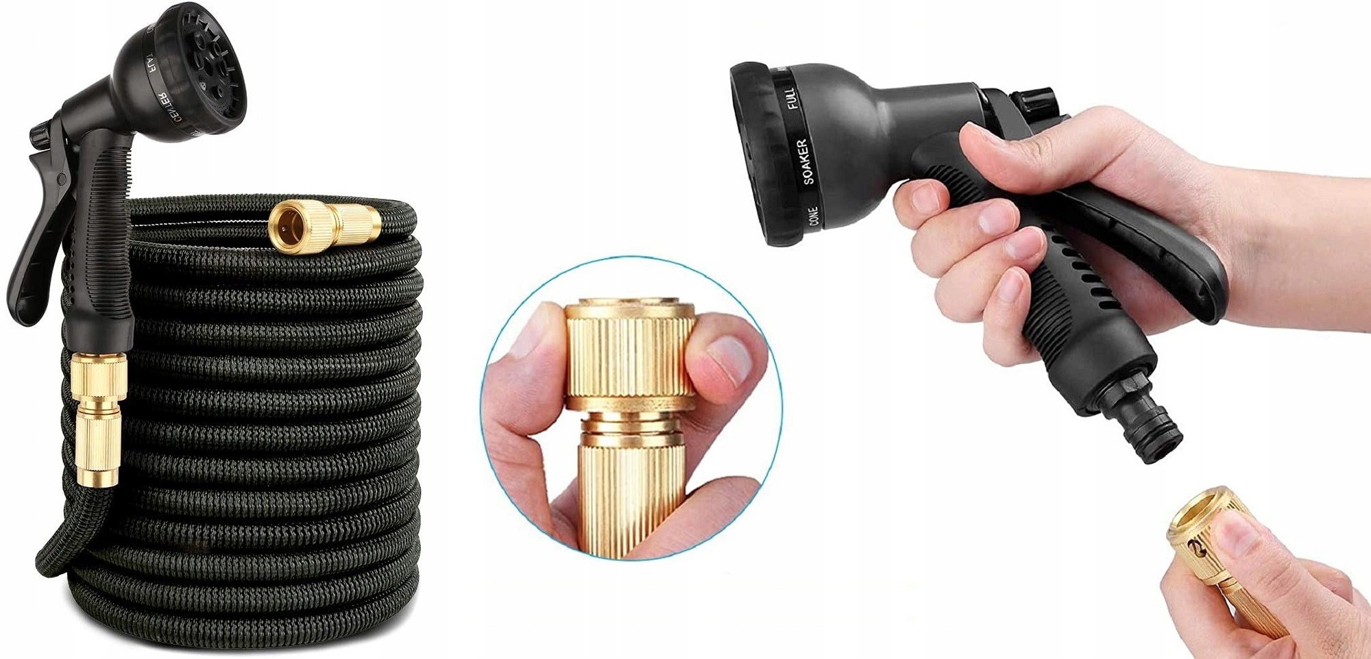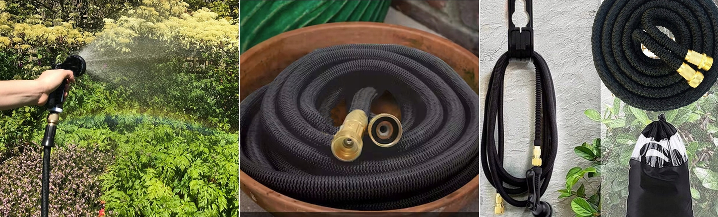 Міцний садовий шланг виготовлений із міцних матеріалів – чистих мідних з’єднувачів, а сам шланг виготовлений із латексного матеріалу, що робить його стійким до механічних пошкоджень та несприятливого впливу зовнішні чинники, в т.ч. УФ-променів, що означає, що він прослужить багато років.