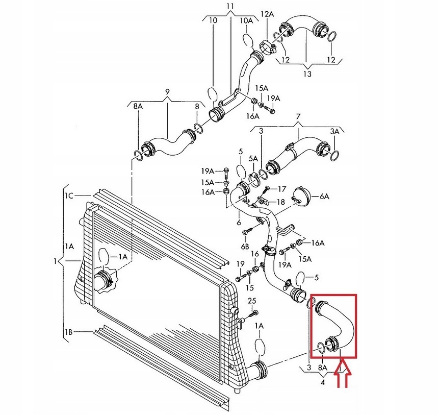 ТРУБКА ІНТЕРКУЛЕРА ТУРБО Caddy Golf V Passat B6 Touran Jetta 1.9 TDI 2.0 TDI