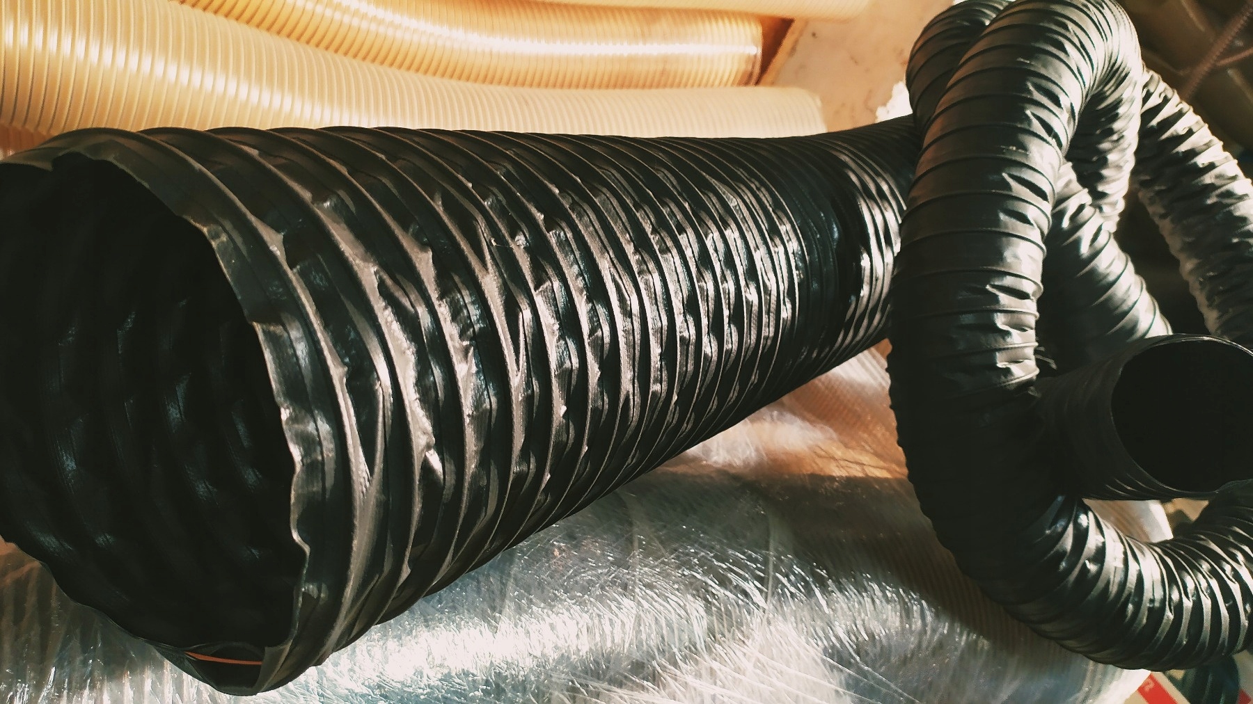 Армований шланг із тканини PES, покритої з двох сторін ПВХ. Призначений для відсмоктування та видалення газоподібних середовищ і пилу в мобільних установках, а також використовується для відведення зварювальних парів і вихлопних газів. Застосовується у вибухонебезпечних зонах завдяки підвищеним антистатичним і вогнезахисним властивостям. Він має широку хімічну стійкість і стійкість до гідролізу, тому його часто використовують у сільському господарстві для обприскувачів, а в промисловості для транспортування кислотних, лужних і масляних туманів.
