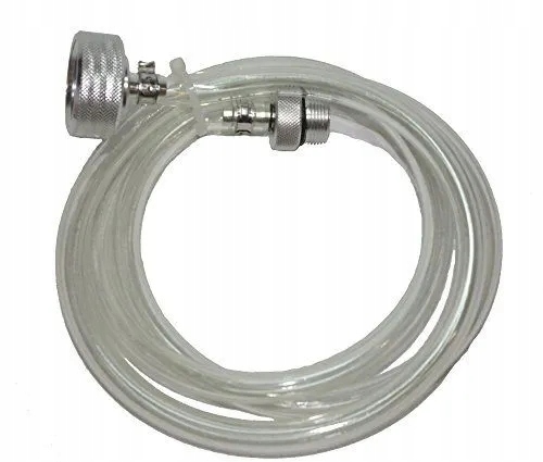 - Зливний шланг має перехідник, який, загвинчивши його в масляний фільтр, відкриває клапан, і масло тече через прозорий шланг. На іншому кінці шланга є універсальна заглушка з різьбленням, яка дозволяє монтувати його до зливного бачка.