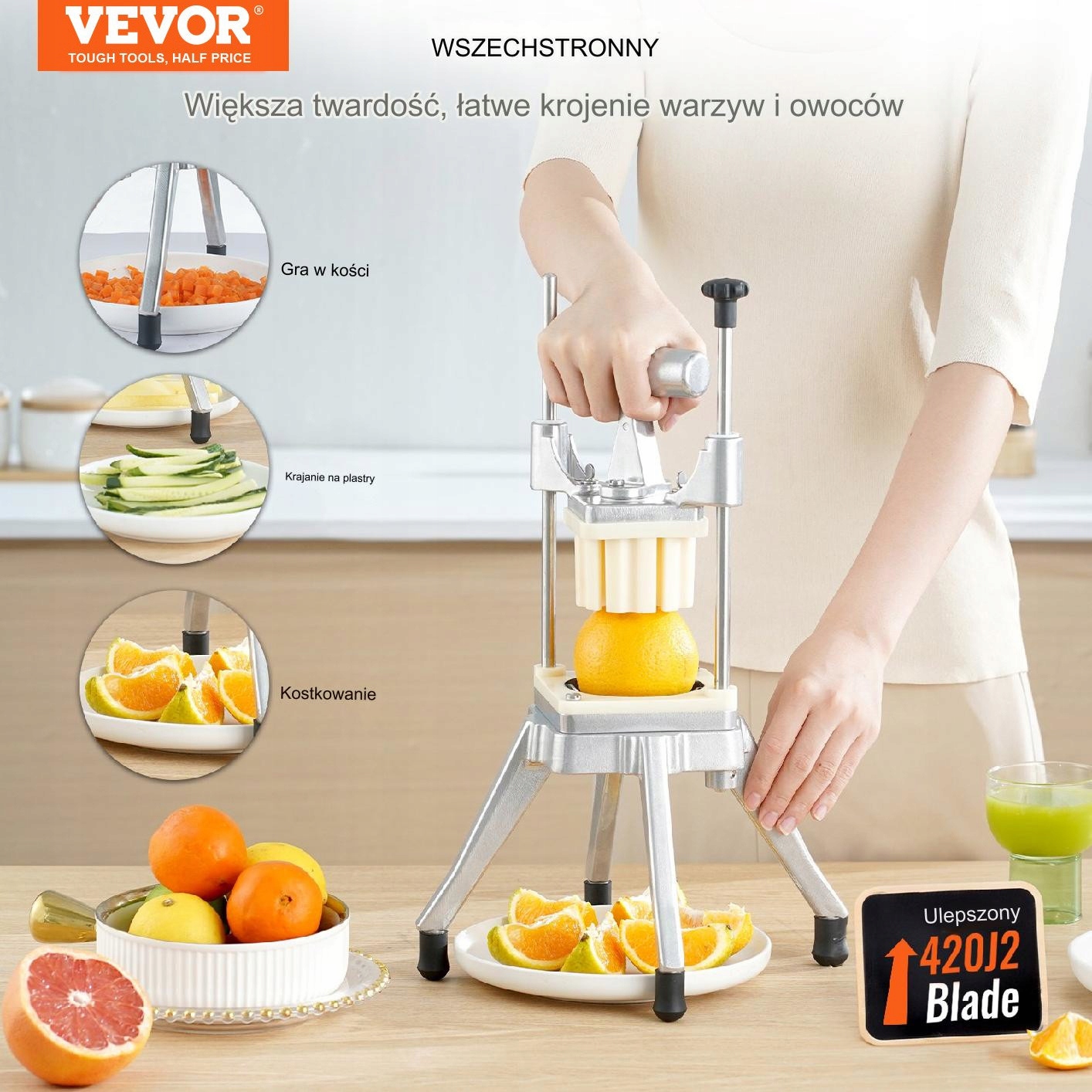Мізер оснащений 4 змінними лезами, які дозволяють різати різання овочів. Набір включає різання лопатей на кубики, шматочки, фрі та клини. Це ідеальний інструмент для приготування картоплі, помідорів, цибулі або грибів у професійній кухні.