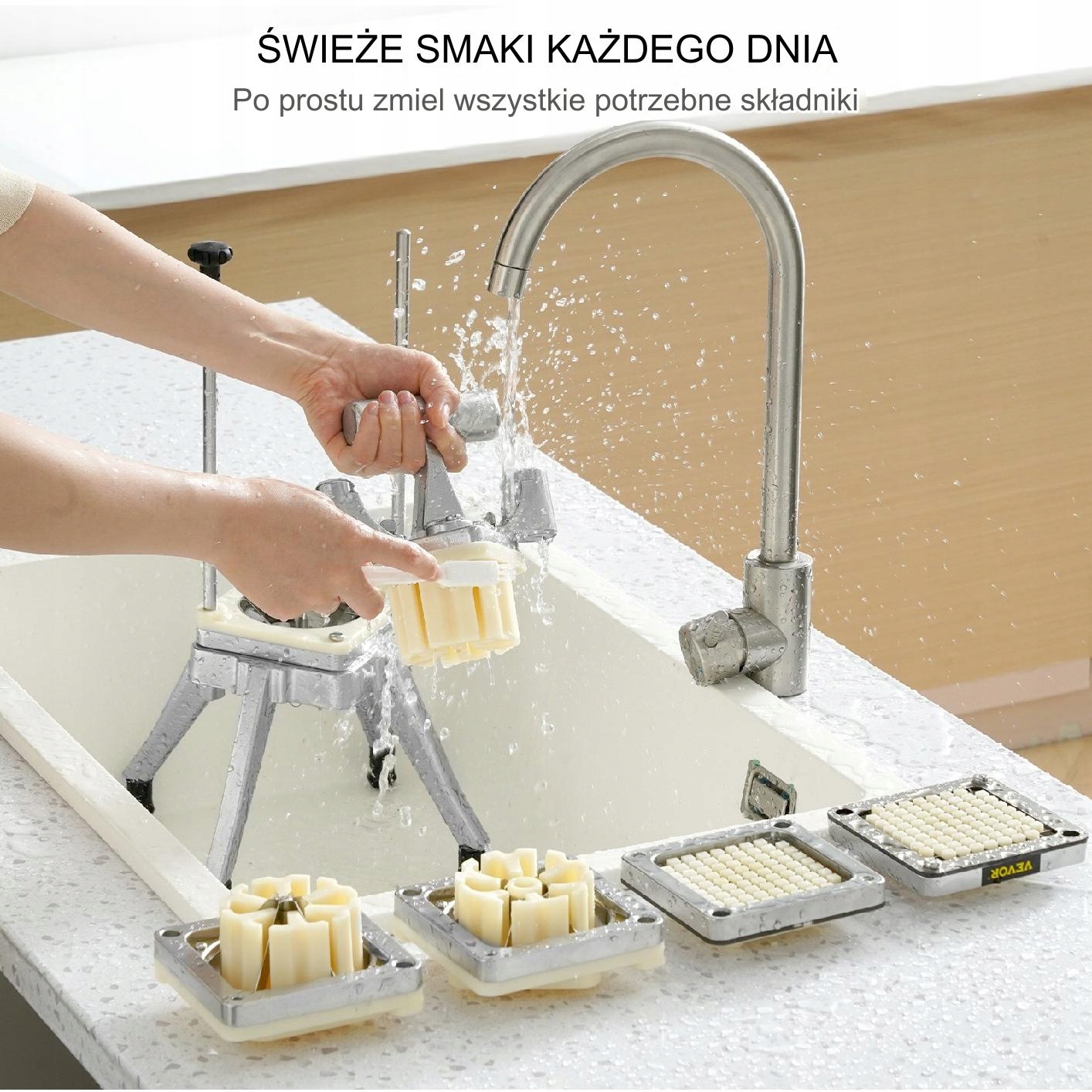 Krajalnica do frytek warzyw ręczna 4 ostrza + tacka