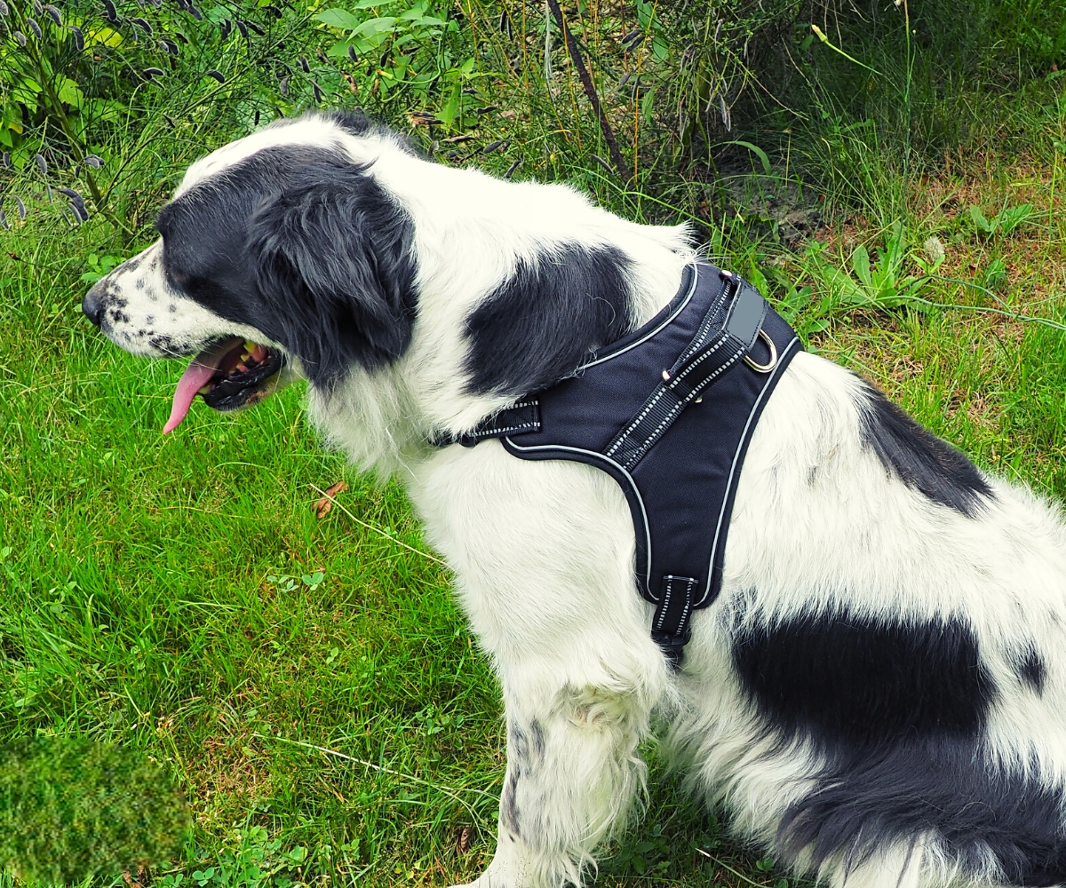 Шлеї без тиску зі світловідбиваючими елементами для собак наступних видів: акіта, афганський хорт, швейцарський зенненхунд, золотистий ретривер, лабрадор ретрівер, голландська вівчарка, гренландська собака, аіді, американська акіта, біла вівчарка, німецька вівчарка, Швейцарський, Біллі, Кунхаунд, Бладхаунд, Боксер, Кане Корсо, Іспанський хорт, Російська борзая, Шотландський хорт, Угорський хорт вагою 30 - 40 кг