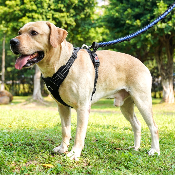 Плавне, плавне регулювання розмірув області грудей і живота гарантує, що шлея точно підходить собакі статура та розмір, а відбиваючі шви забезпечать йому безпеку під час прогулянок у темряві.