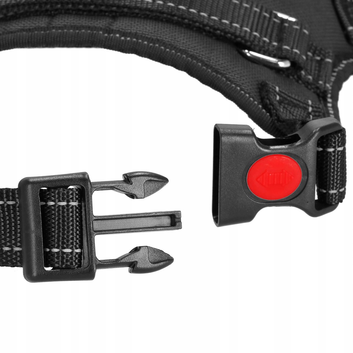 Замок у пряжках запобігає випадковому розстібанню шлеї, що забезпечує безпеку під час прогулянок.