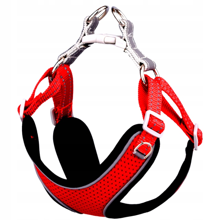 Плавне, плавне регулювання розміру в області грудей і живота забезпечує точне підгонку шлеї до статури і розміру собаки, а відбиваюча строчка забезпечить її безпеку під час прогулянки навколо собаки. сутінки.