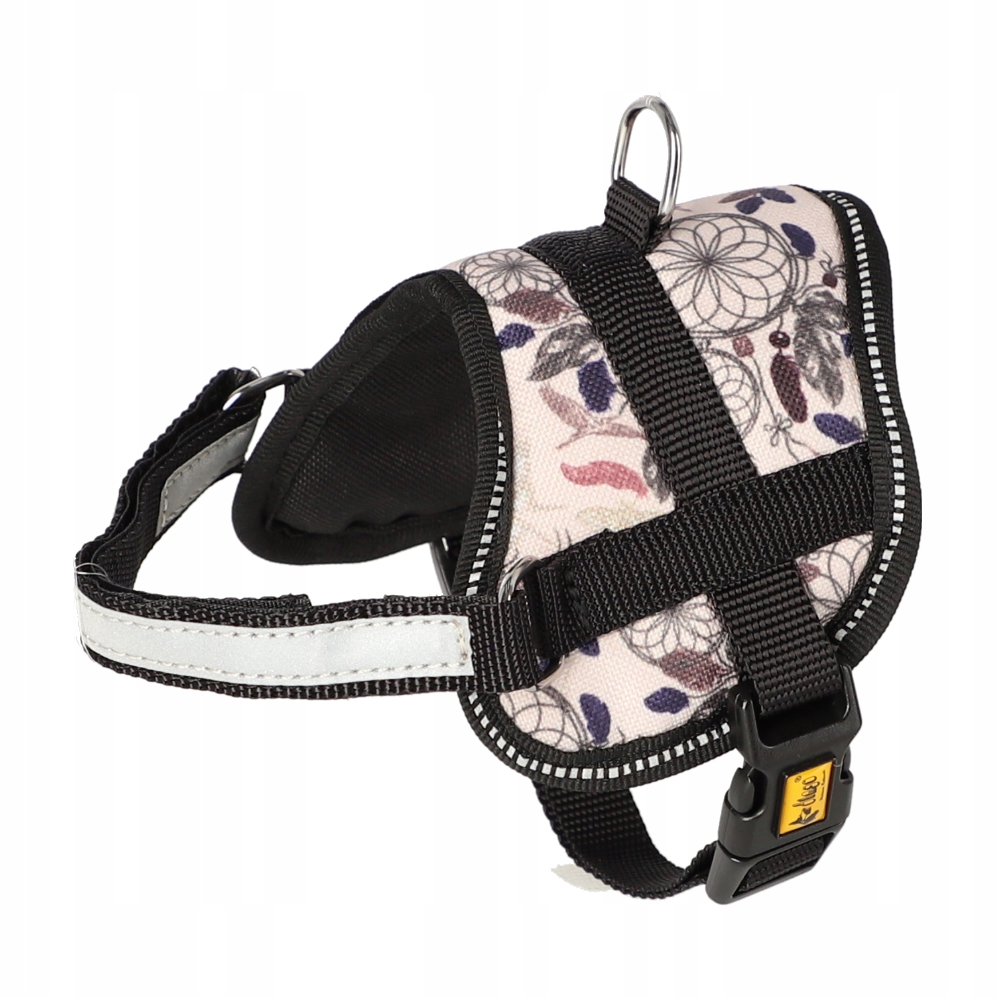 Ремені застібаються на пряжку клац-клак і плавно регулюються на нагрудному ремені позаду передніх ніг. У свою чергу, на нагрудній лямці ви знайдете світловідбиваючий елемент, а сама лямка застібається і регулюється за допомогою зручної і міцної липучки.