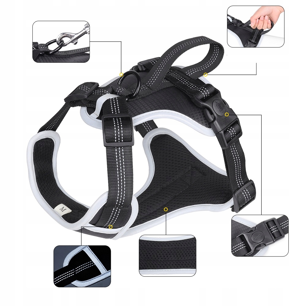 Плавне, плавне регулювання розміру в області грудей і живота забезпечує точне підгонку шлейки до комплекції та розміру собаки, а також відбиваючі шви збережуть його під час прогулянок у темряві.
