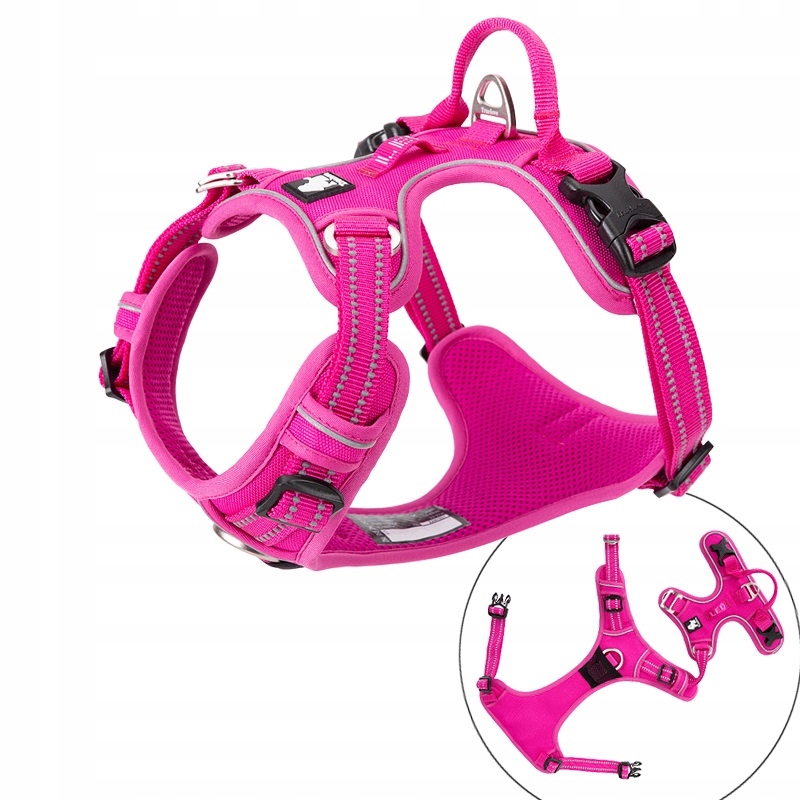 Вони ідеально підходять до фігури вашої собаки завдяки чотириточковому кріпленню регулювання, ці джгути забезпечують не тільки комфорт, але й безпеку. Світловідбиваючі шви гарантують видимість, тож ви можете бути спокійні за свого улюбленця навіть під час вечірніх прогулянок.