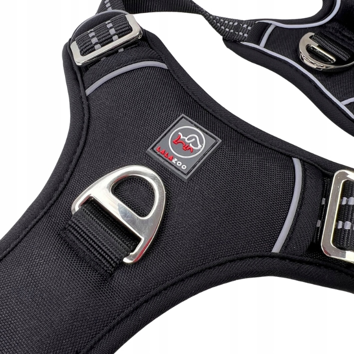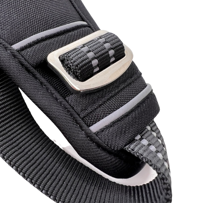 Плавне плавне регулювання розмірув області грудей і живота забезпечує точне підгонку шлейки до комплекції та розміру собаки, а відбиваючі шви забезпечать її безпеку під час прогулянки у темряві.
