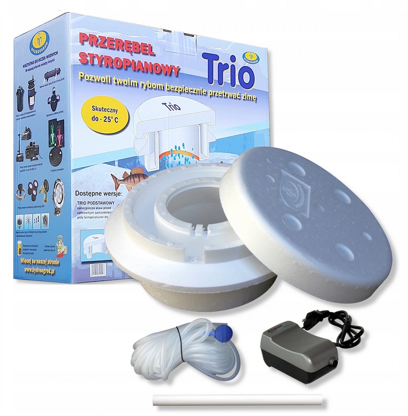 Любка TRIO з аератором захищає ставок від замерзання до температури приблизно -15 °C. Одного пінополістиролу TRIO вистачає приблизно на 15 м2 ставка.