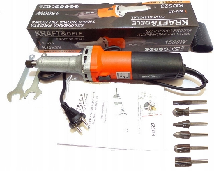 ШЛІФУВАЛЬНА МАШИНА З ПРЯМИМ ПАЛЬЦЕМ З РЕГУЛЮВАННЯМ ШВИДКОСТІ + 6 ФРЕЗІВ