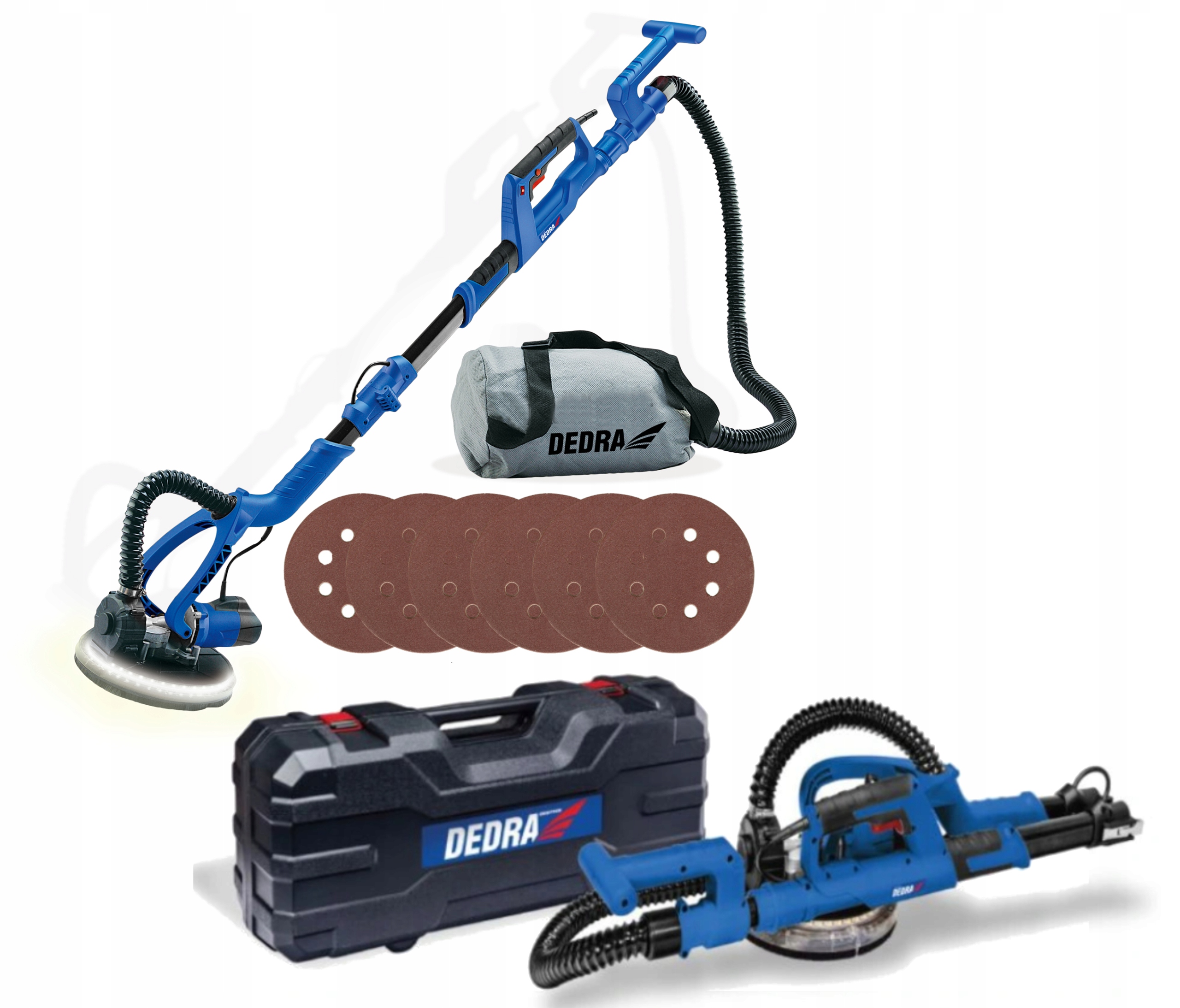 - Гіпсова шліфувальна машина DEDRA DED7766 зі світлодіодним підсвічуванням і турбінним відсмоктуванням пилу.