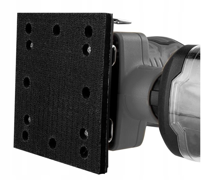 Шліфувальна машина має потужність 240 Вт та швидкість холостого ходу - 13 000 об/хв. Він працює від електрики. Амплітуда коливань 1 мм. Інструмент оснащений зручною системою видалення пилу і контейнером для збору відходів. Можливість швидкої заміни наждачного паперу полегшує роботу, а в комплекті 3 ніжки - квадратна, прямокутна і трикутна. , збільшити можливості пристрою. У комплекті з шліфувальною машинкою є наждачний папір (9 штук). Інструмент важить всього 1,2 кг, що дозволяє працювати однією рукою. Рукоятка, вкрита протиковзким матеріалом, забезпечує міцне захоплення.
