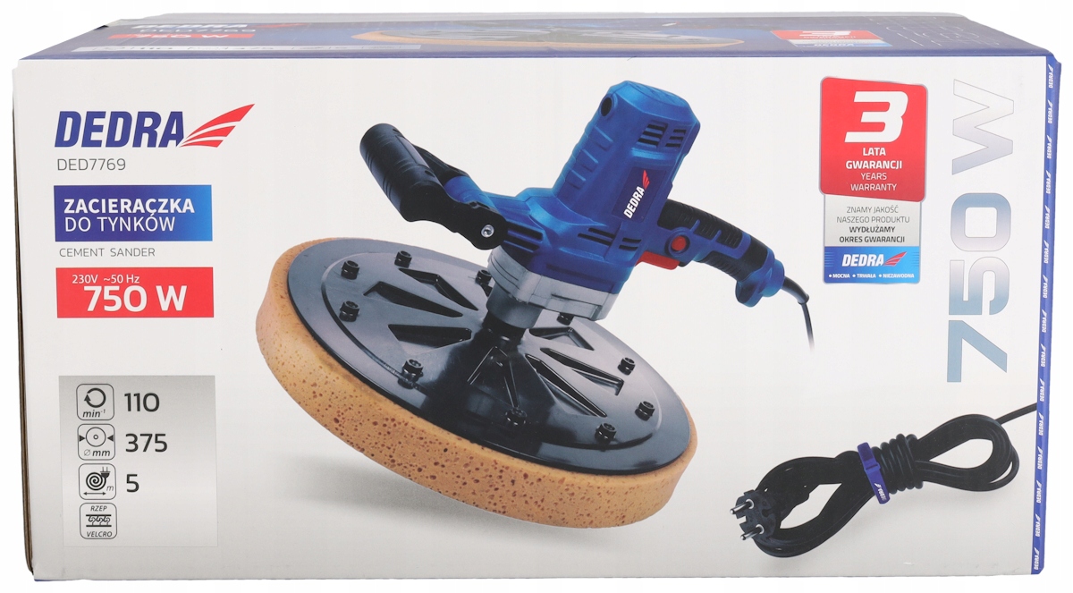 Потужність двигуна 750 Вт і великий діаметр диска 375 мм дозволяють виконувати роботу швидше, забезпечуючи професійний фінішний ефект як на менших, так і на більші поверхні. Довжина шнура живлення 5 метрів - це дозволяє вільно маневрувати під час роботи.