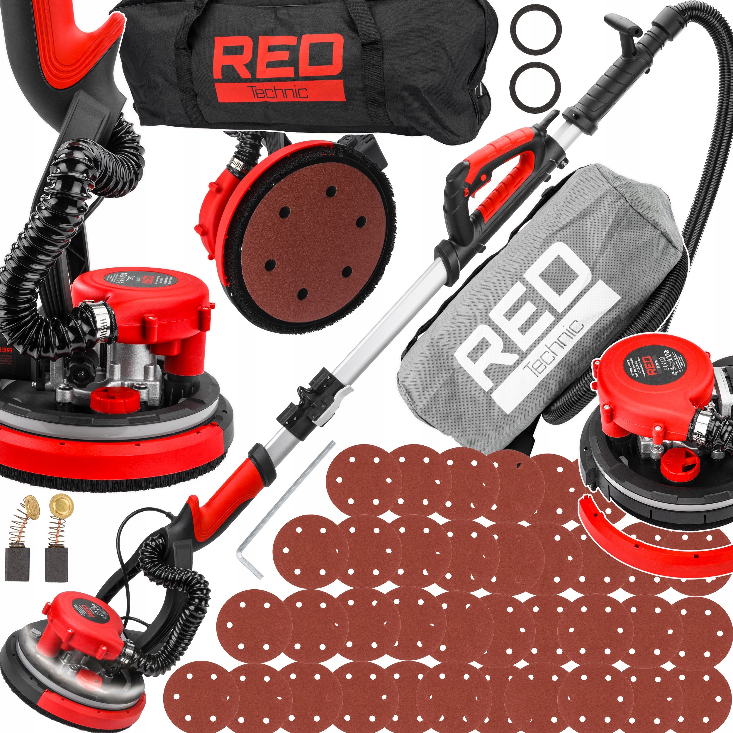 Шліфувальна машинка RED TECHNIC з довгим вильотом типу GIRAFFE, модель RTSDG0108 - надійний інструмент для шліфування гіпсової штукатурки на стінах , стелі та інших важкодоступних місцях.