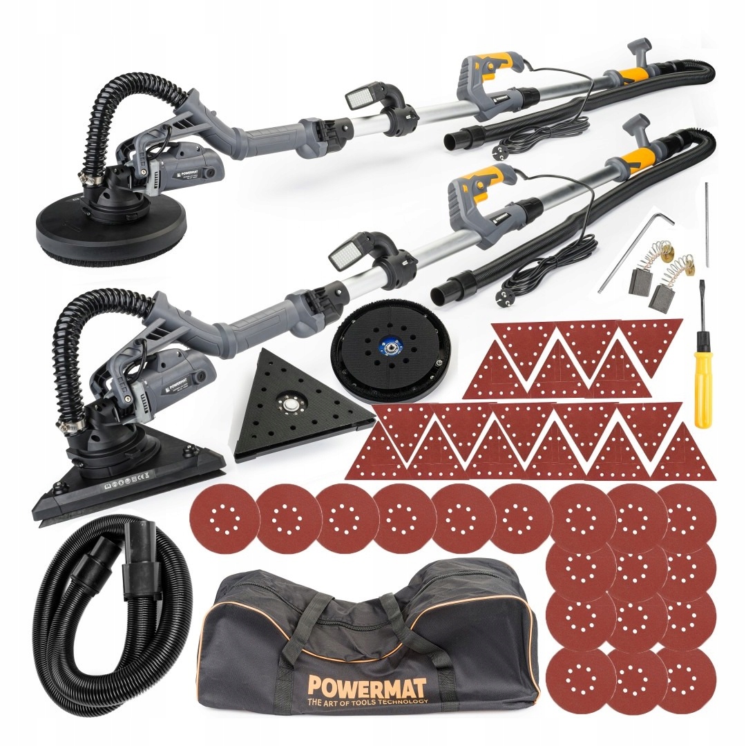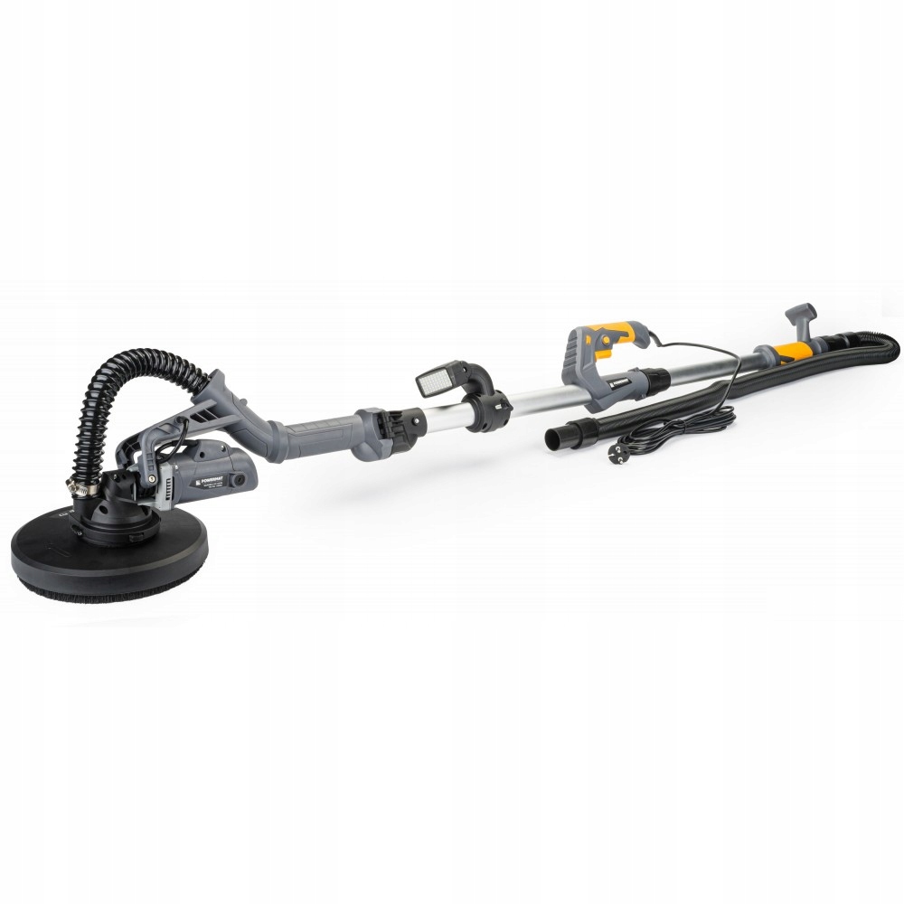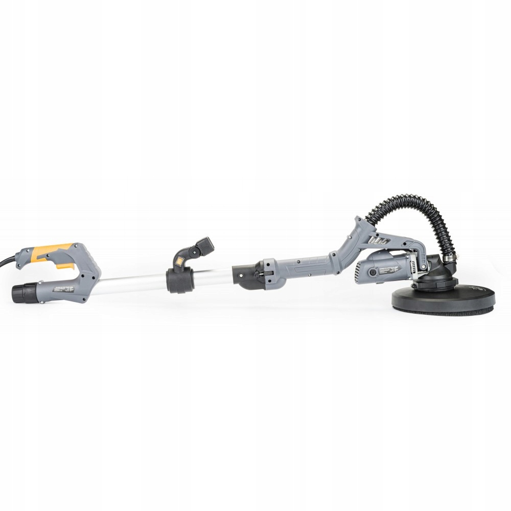 Шліфувальна машина типу Giraffe без пилу. Пристрій ідеально підходить для шліфування гіпсових штукатурок на стінах, стелях і високих поверхнях. Рухома нахилена головка дозволяє зручно керувати стрілою на стінах, стелях і навіть на підлозі. Можливість працювати під кутом 90-180 градусів. М'ясорубка оснащена шлангом для видалення пилу, що утворюється під час помелу, цей шланг необхідно підключити до промислового пилососа. Прилад оснащений ручкою регулювання швидкості та світлодіодною лампою.