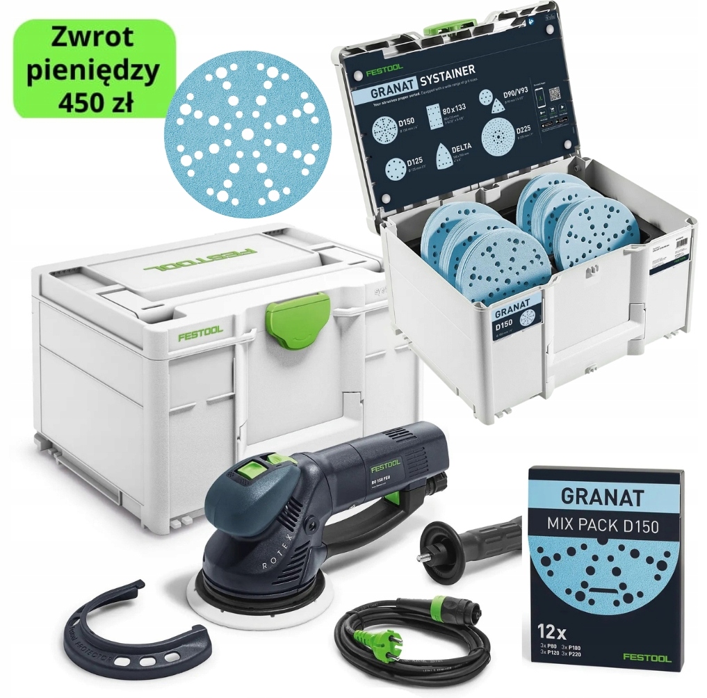 Шліфувальна машина Festool ROTEX RO 150 FEQ-Plus + Систейнер з паперами 578257