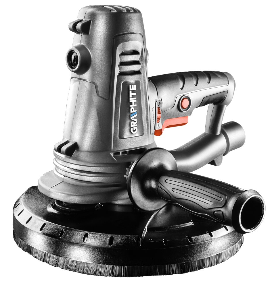 Професійна шліфувальна машина GRAPHITE потужністю 1050 Вт призначена для точної обробки штукатурних поверхонь. М'ясорубка оснащена прямим приводом шліфувального диска - в обхід вала. Має можливість плавного регулювання обертання головки в діапазоні від 800 до 2300 об / хв. Шліфувальний диск діаметром 225 мм. Система відведення пилу з можливістю безпосереднього підключення мішка для пилу або трубки пилососа забезпечить порядок на робочому місці. Крім того, м'ясорубка оснащена додатковою двосторонньою ручкою. На головній ручці є гумові захисні накладки, що забезпечують комфорт і стабільність під час шліфування. Для безпеки робочий диск закритий накладкою-щіткою. Заміна використаного наждачного паперу відбувається швидко, оскільки він кріпиться за допомогою липучок. Шліфувальна машина має шнур живлення довжиною 4 м. Можлива заміна зношених вугільних щіток самостійно. У комплект шліфувальної машини входять: наждачний папір, всмоктувальний шланг, плечовий ремінь і мішок для пилу. Відповідність європейським стандартам підтверджується сертифікатом CE.