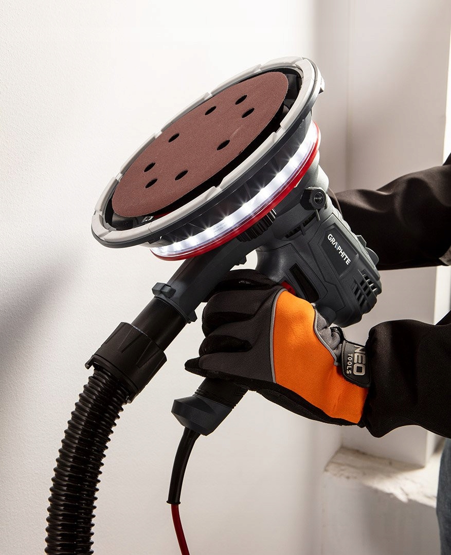 Шліфмашина для штукатурки 900 Вт, 180 мм, LED 59G263 фірми GRAPHITE - це шліфмашина потужністю 900 Вт зі світлодіодним підсвічуванням, призначена для обробки штукатурних поверхонь.