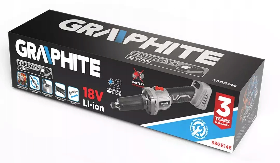 Проста акумуляторна шліфувальна машина. Енергія без акумулятора 58GE146 Графіт