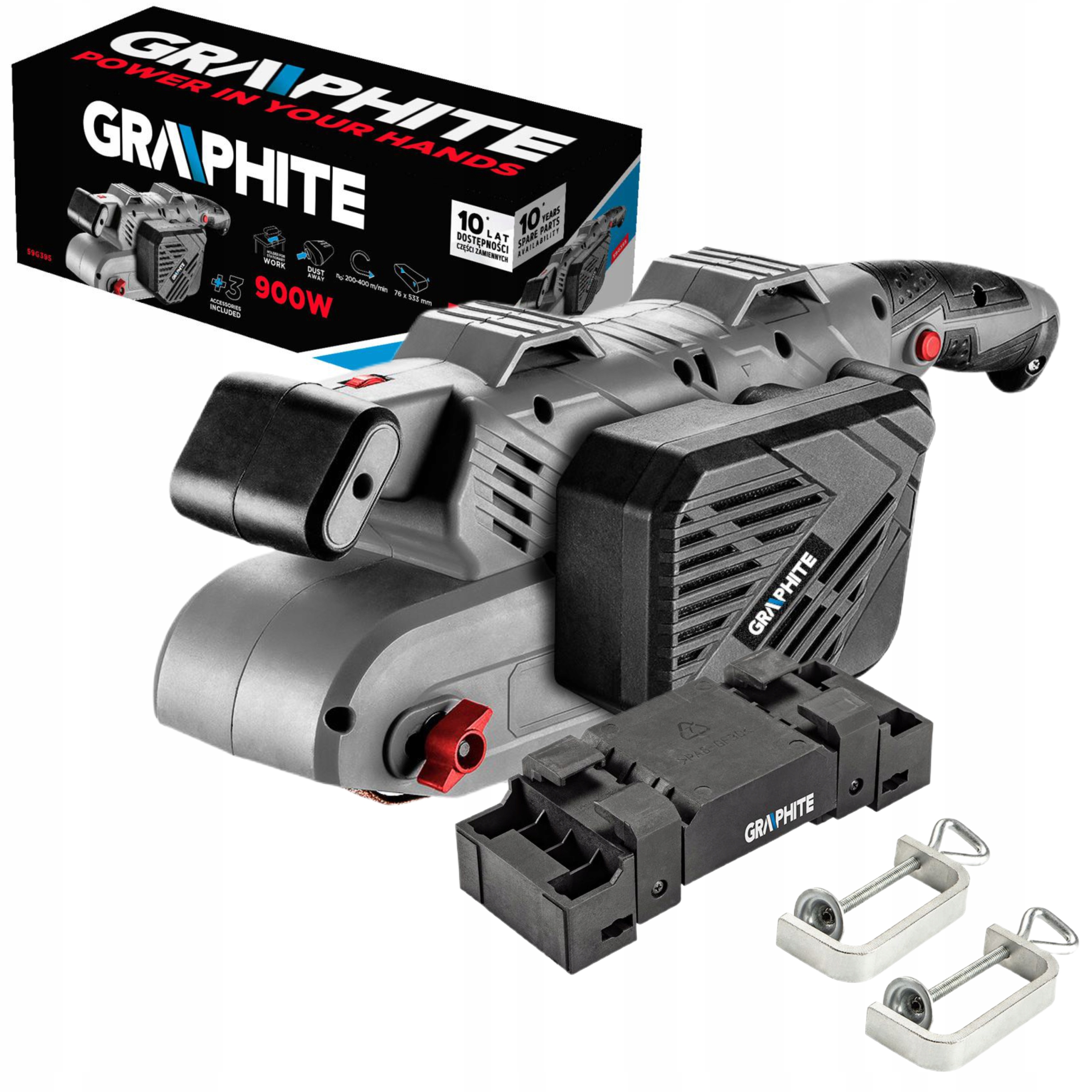 Спеціалізована графітова стрічка з 900 Вт, призначена для обробки дерев'яних та дерев’яних матеріалів, металів та пластмас. Пристрій характеризується ергономічною формою та сучасною конструкцією, має кришку, що не має слизу, на головній ручці та додаткову ручку. Перевага шліфувальної машини - це власник для встановлення пристрою до столу. Це, безумовно, збільшує комфорт та свободу роботи оператора. Пристрій у нерухомому положенні буде працювати під час шліфування невеликих дерев’яних елементів, таких як меблеві ручки, короткі рейки або власні ремісничі вироби. Шліфувальник, що веде шліфувальник, виготовлена з високотемпературної та пошкодження алюмінієвого сплаву. Крім того, пристрій має можливість блокувати перемикач для безперервної роботи і оснащений інтегрованою системою водовідведення пилу зі знімним контейнером, яка захищає приміщення від бруду. Максимальна швидкість зачистки стрічки становить 400 метрів на хвилину.